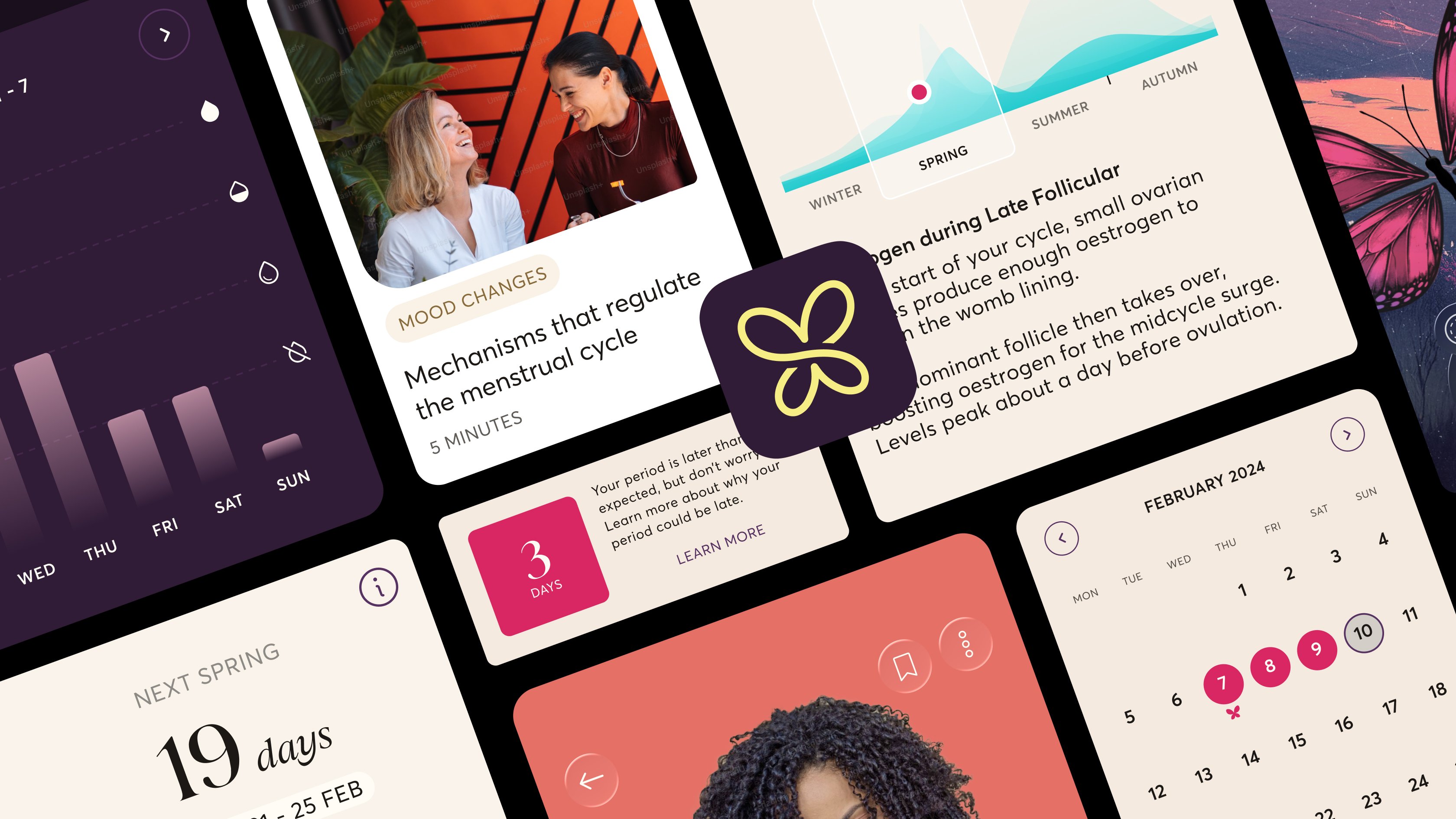 We built a privacy-first architecture where everything lives locally on the user's device, fully encrypted. Instead of the usual dashboard of charts, we created a brand and digital experience that evolves with you: a visual companion that responds to your cycle in real time. It's data-driven, but genuinely beautiful.
